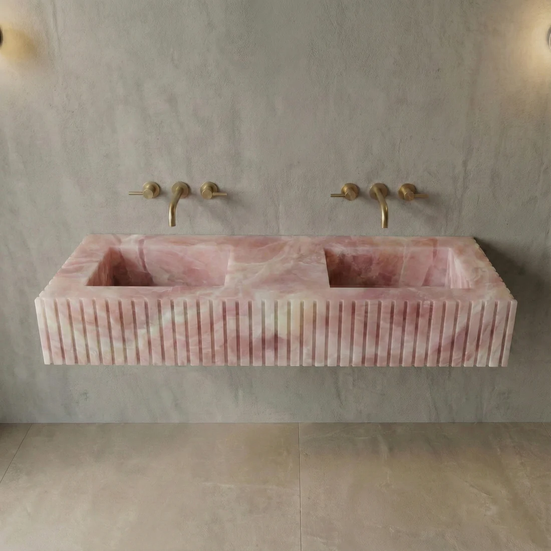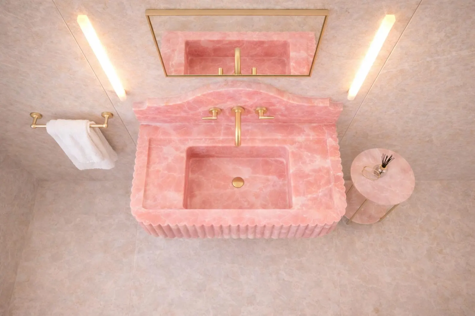Wall-Mounted Pink Onyx Sink: Mounted directly on the wall, saving space and creating a unique visual impact.