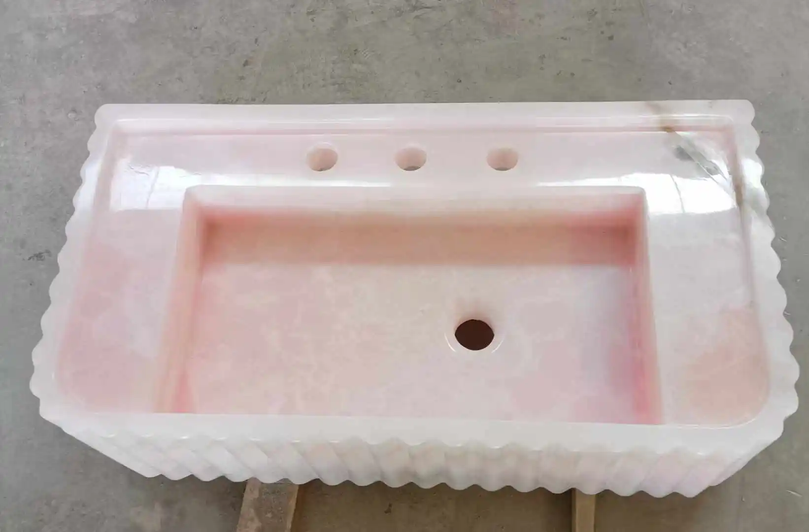 Custom-Shaped Pink Onyx Sink: Artisans can create unique and personalized sink shapes to match your design preferences.
