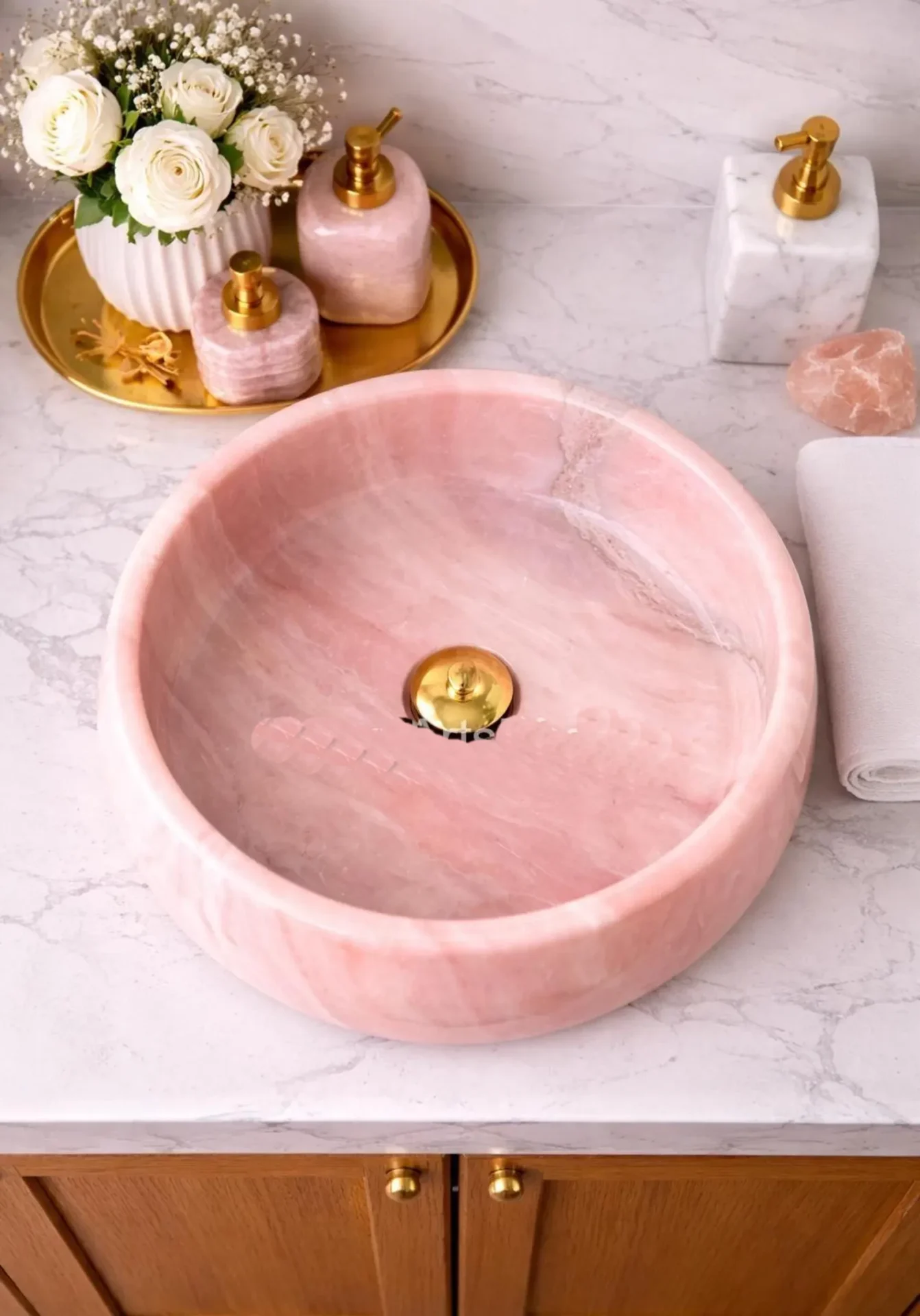Round Pink Onyx Sink: Creates a sense of harmony and balance with its smooth curves.