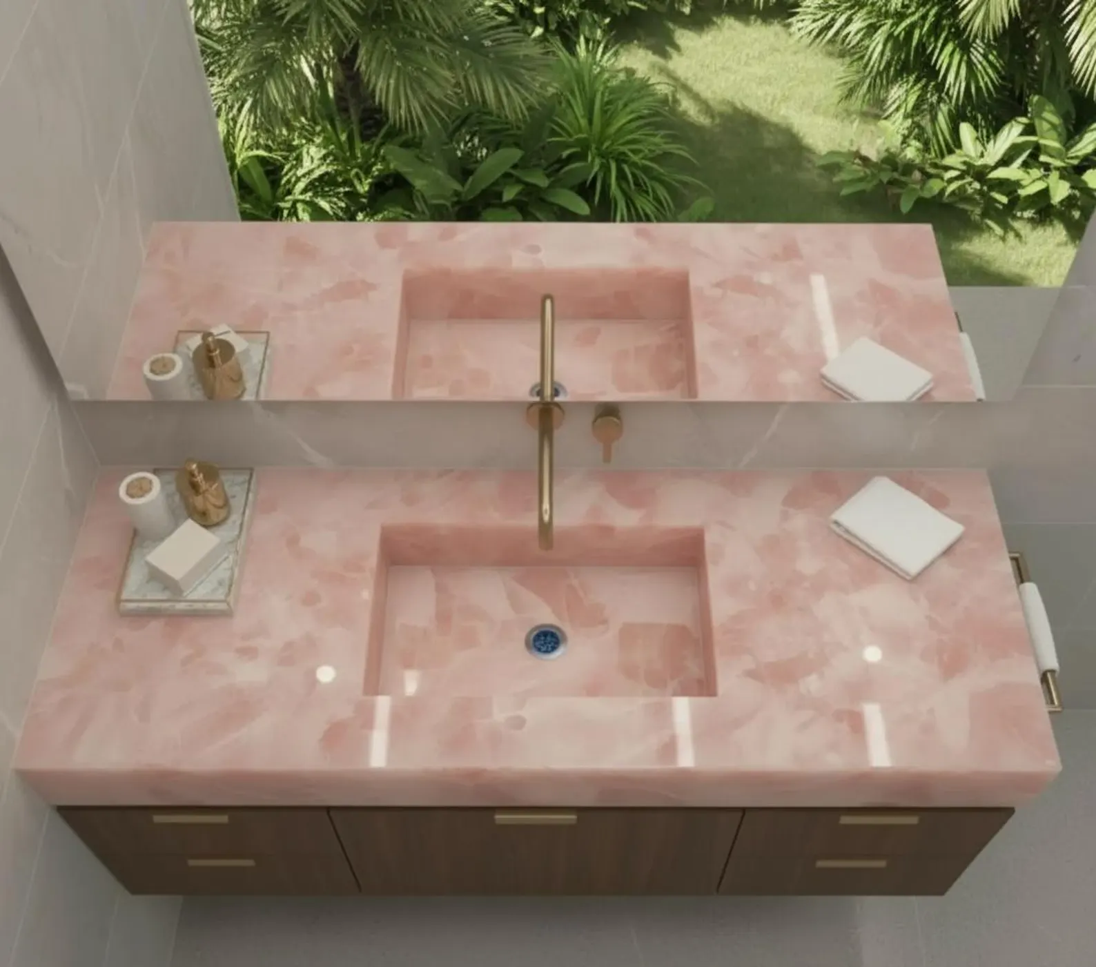 Undermount Pink Onyx Sink: Installed beneath the countertop for a seamless and integrated look.