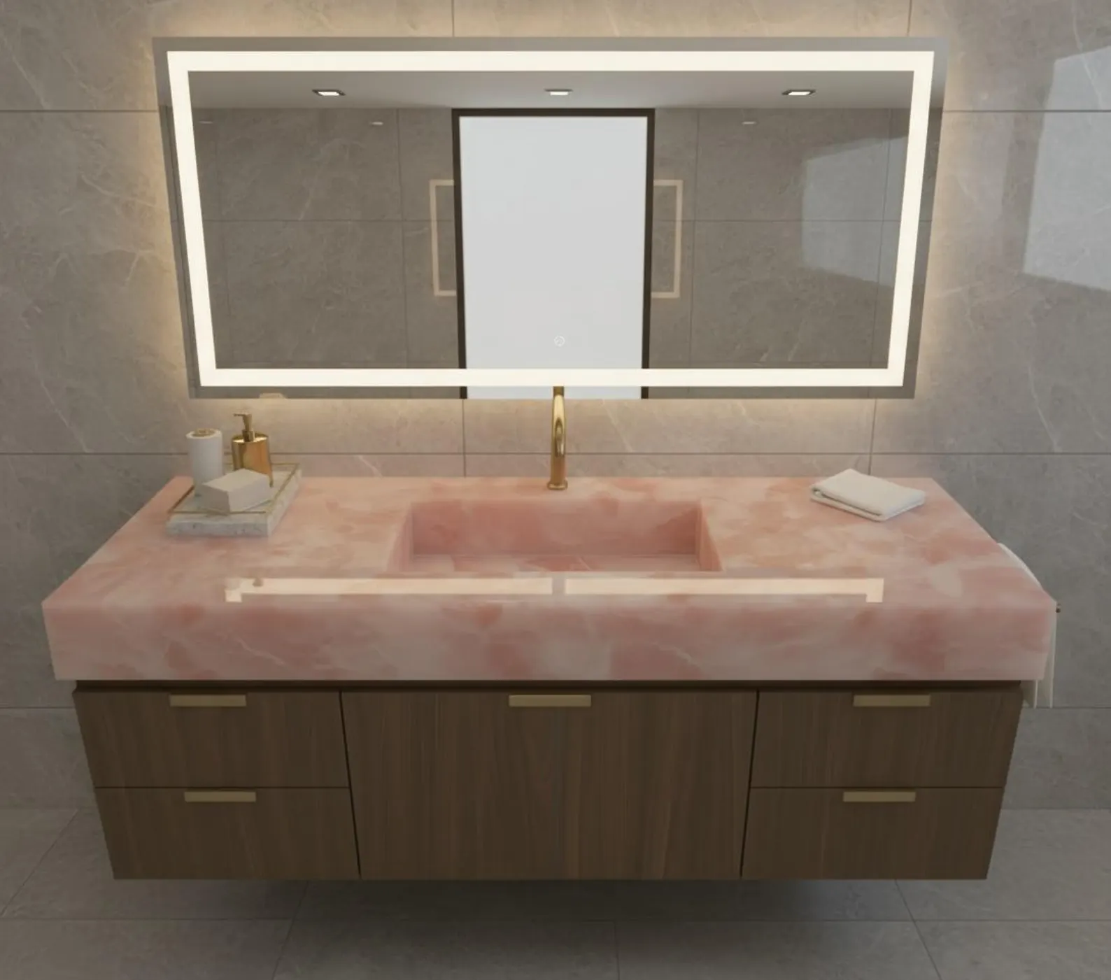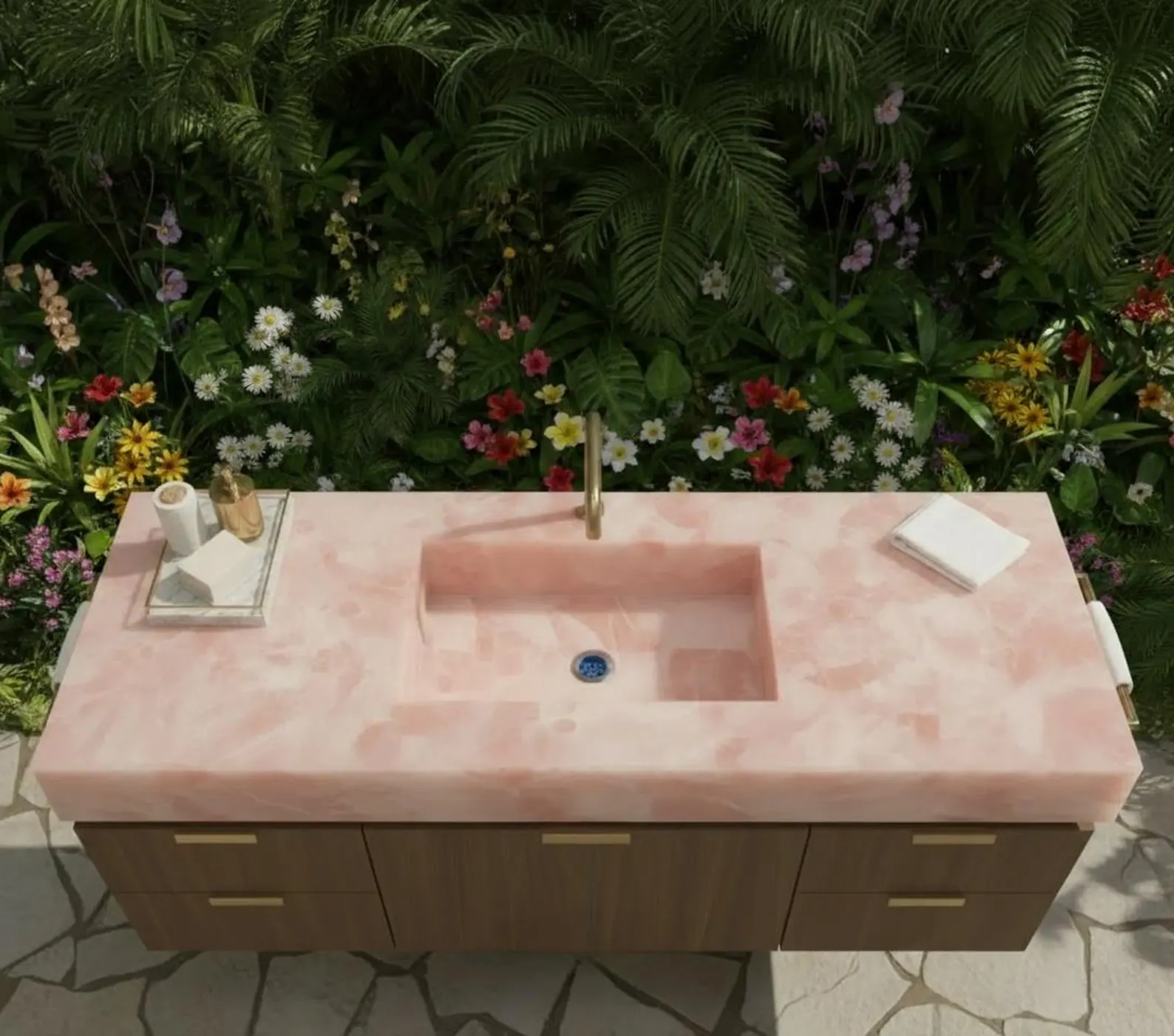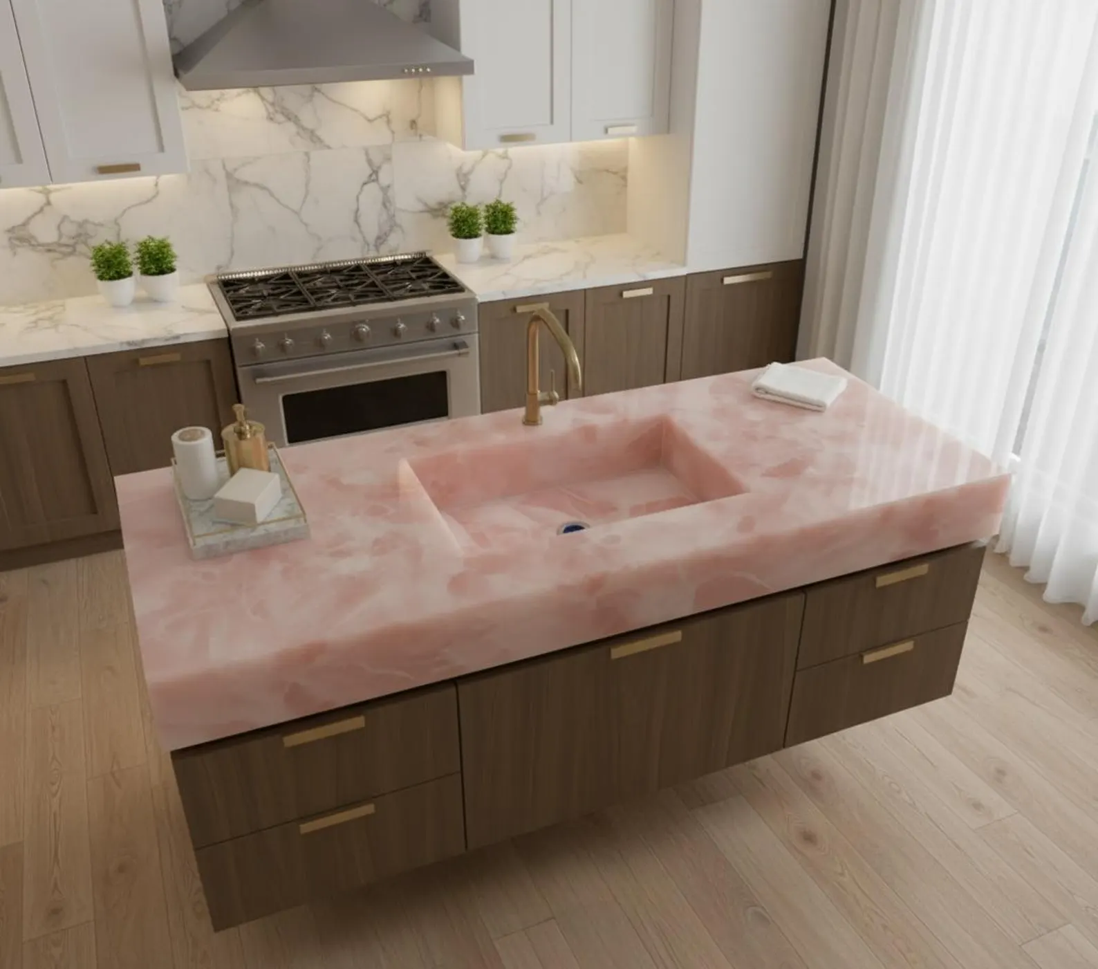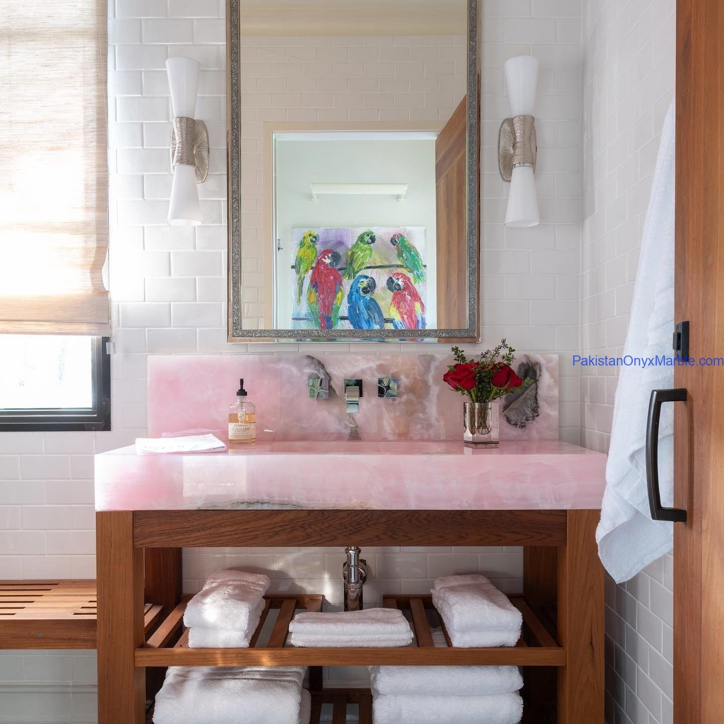 Pakistan Onyx Marble presents a premium collection of Pink Onyx Sinks, crafted from 100% natural onyx stone. Known for their soft pink tones, translucent layers, and elegant veining, these sinks are designed for luxury bathrooms, villas, hotels, and high-end interior projects.
