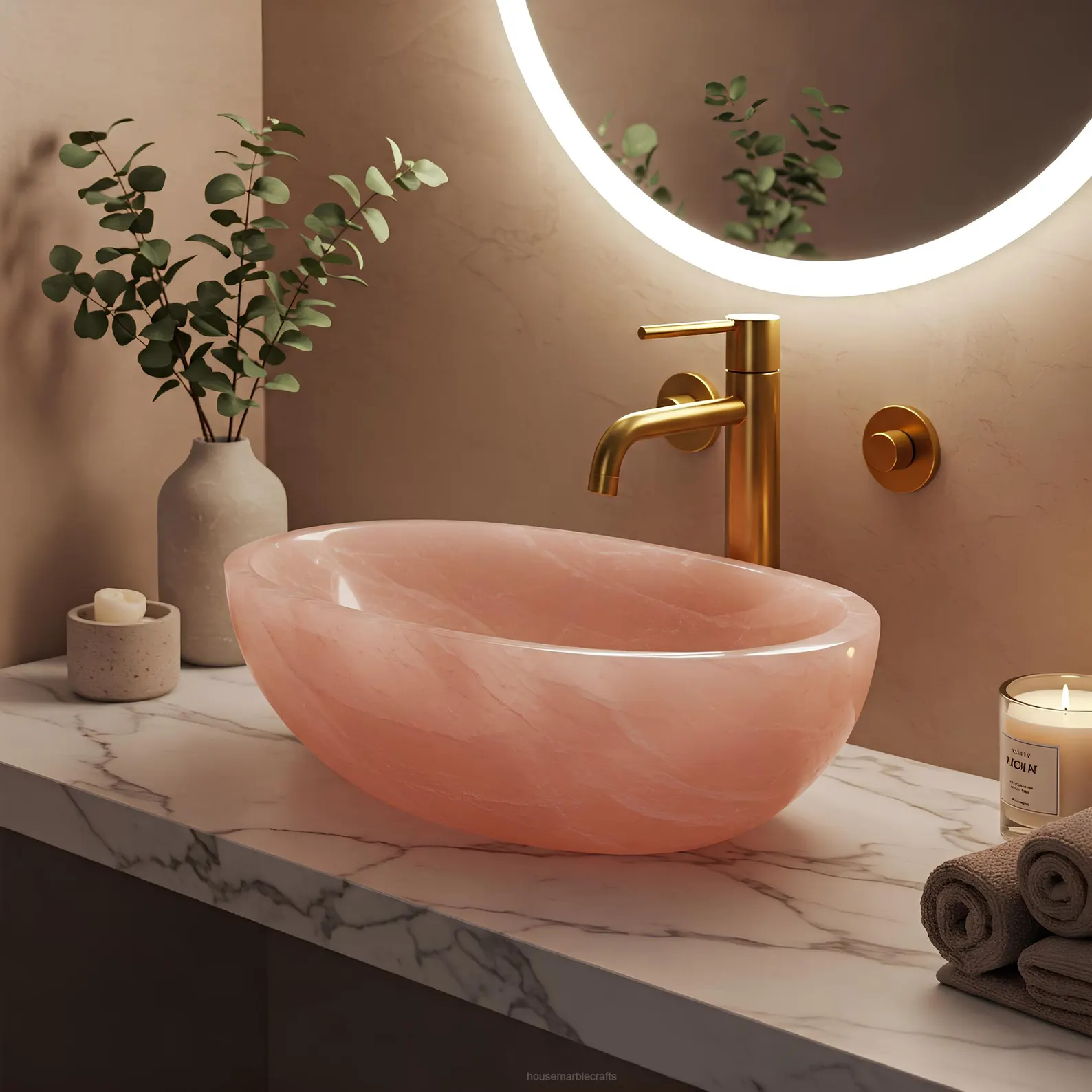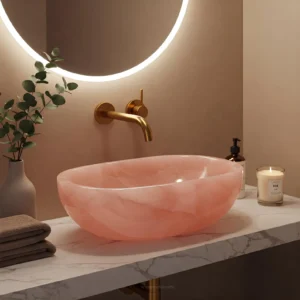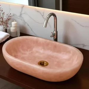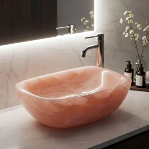 Pakistan Onyx Marble presents a premium collection of Pink Onyx Sinks, crafted from 100% natural onyx stone. Known for their soft pink tones, translucent layers, and elegant veining, these sinks are designed for luxury bathrooms, villas, hotels, and high-end interior projects.
