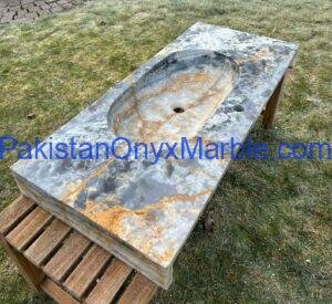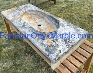 Pakistan Onyx Marble presents a premium collection of Blue Onyx Sinks, crafted from 100% natural blue onyx stone. Known for its rare blue tones, striking banding patterns, and high translucency, Blue Onyx is one of the most exclusive and high-value natural stones used in luxury interiors.