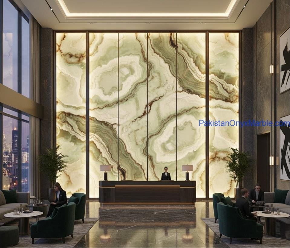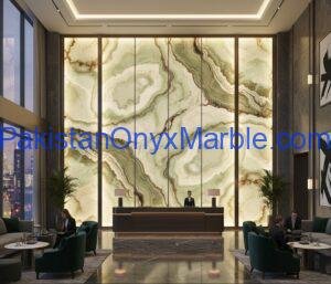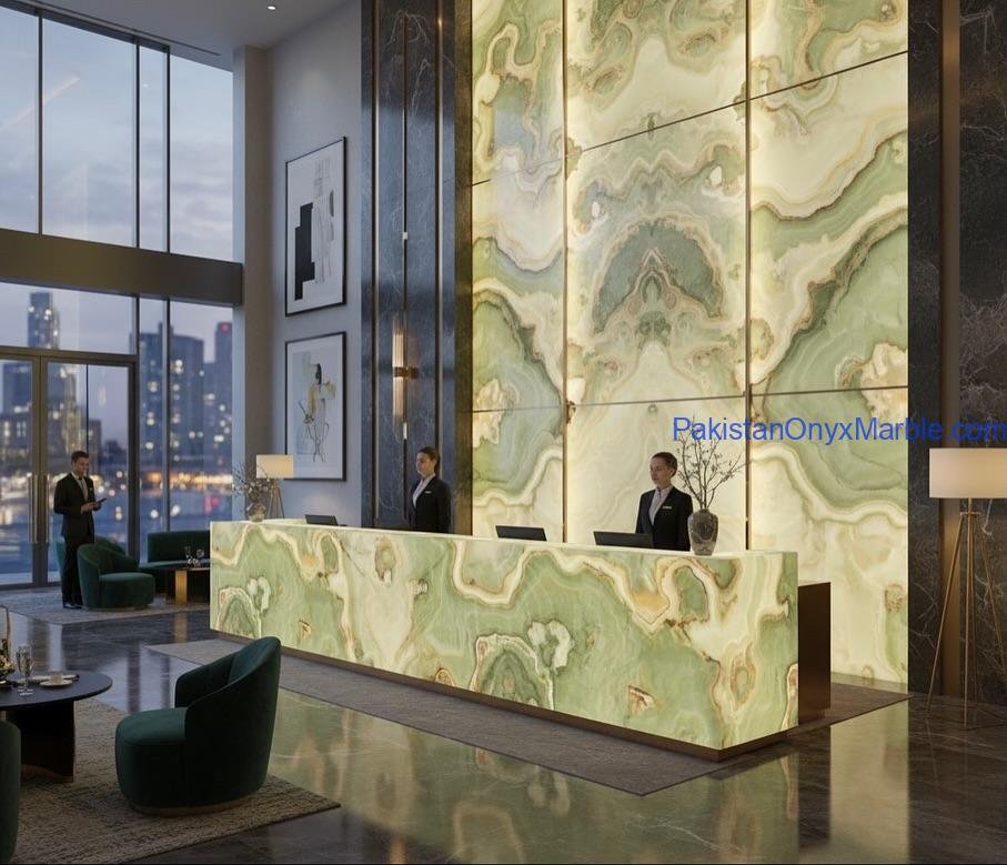 Backlit Applications: The translucent properties of onyx make it an ideal material for backlit applications, such as feature walls, bars, and reception desks.