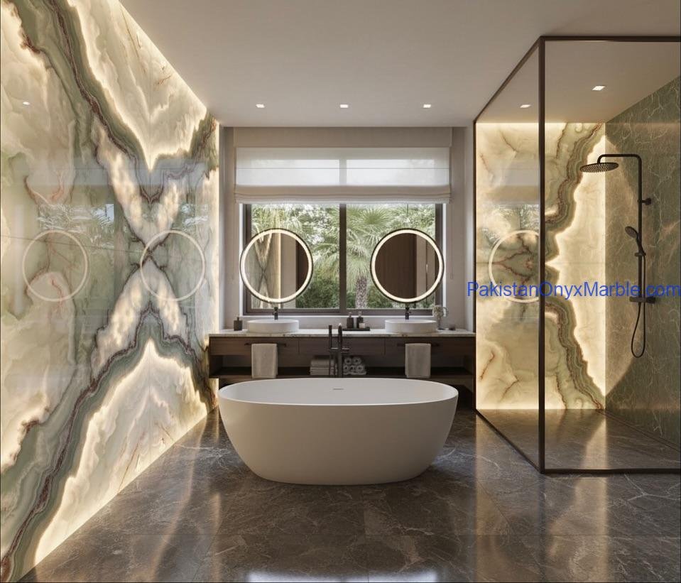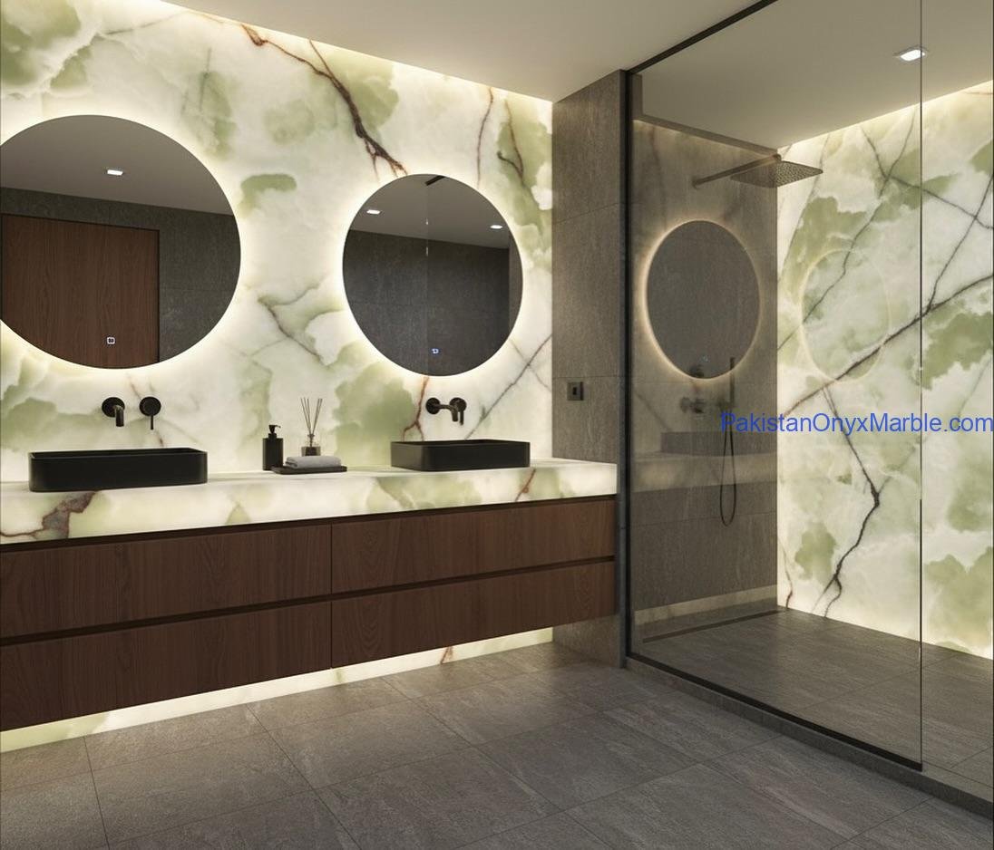 Bathroom Vanity Tops: Afghan green onyx slabs can create stunning vanity tops in bathrooms, adding a touch of luxury to the space.