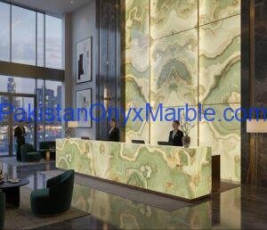 Interior Wall Cladding: Afghan green onyx slabs are often used to create stunning wall cladding that adds a touch of luxury and elegance to interior spaces.