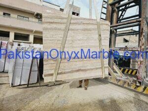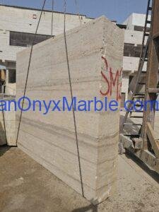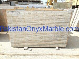 Travertine Slabs Light Beige Color Vein Cut With Silver Veins