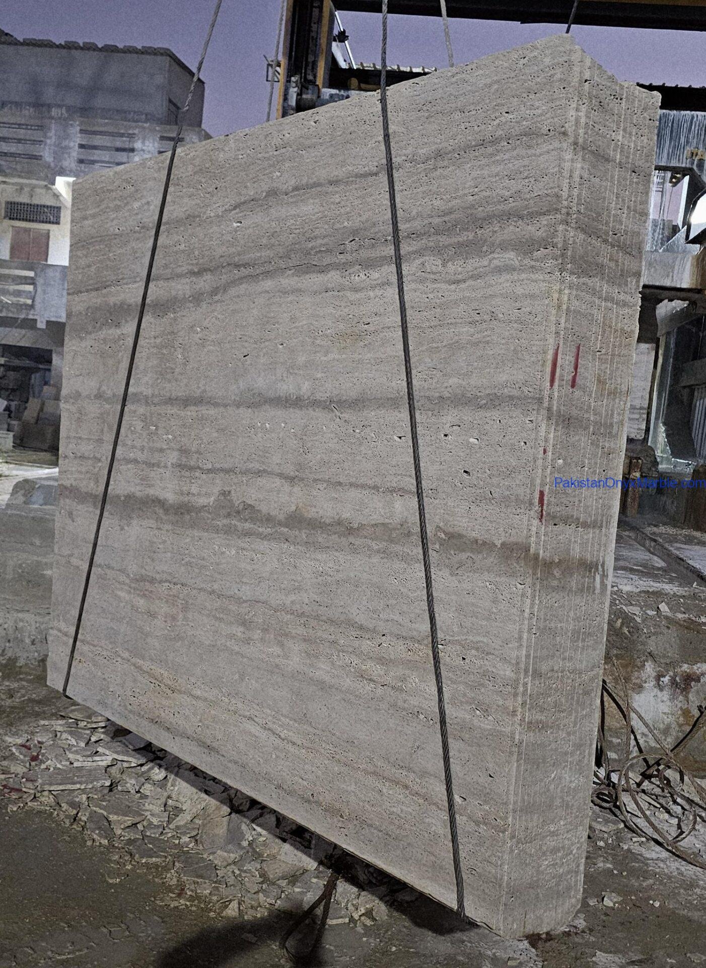 Travertine Slabs Light Beige Color Vein Cut With Silver Veins