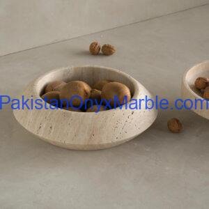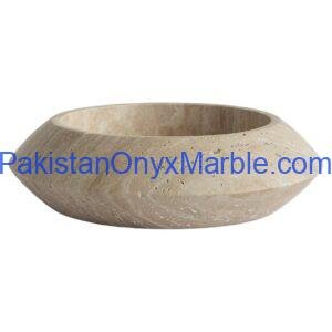Pakistan Onyx Marble produces premium Travertine Angled-Design Bowls, carved from Grade-A Natural Travertine.