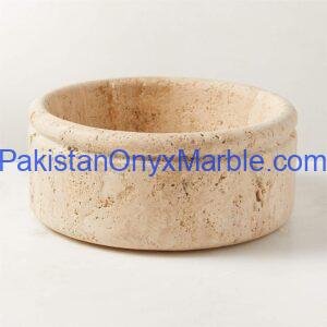 Pakistan Onyx Marble produces premium Travertine Angled-Design Bowls, carved from Grade-A Natural Travertine.