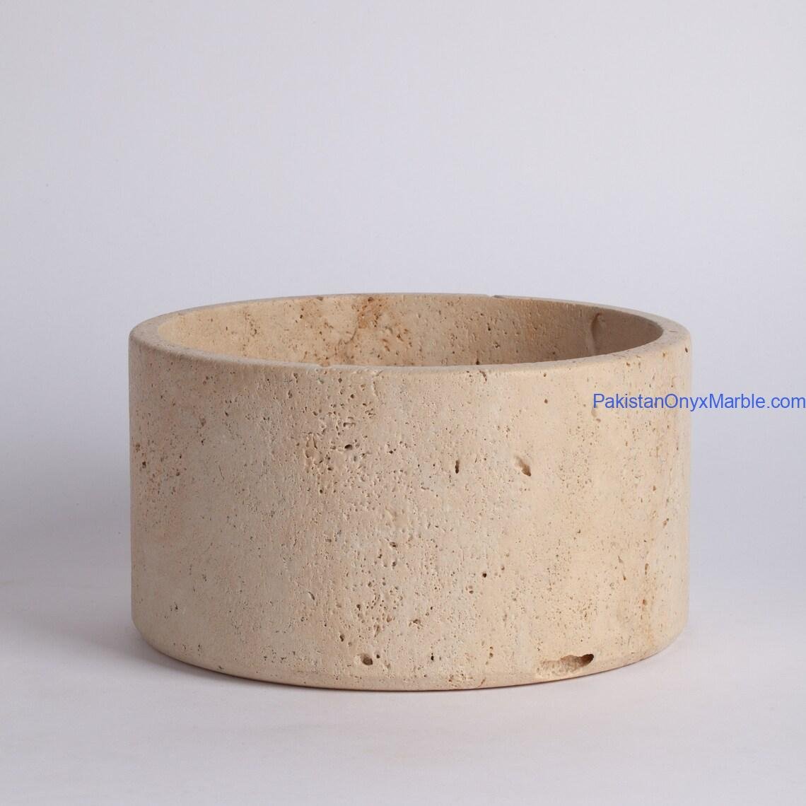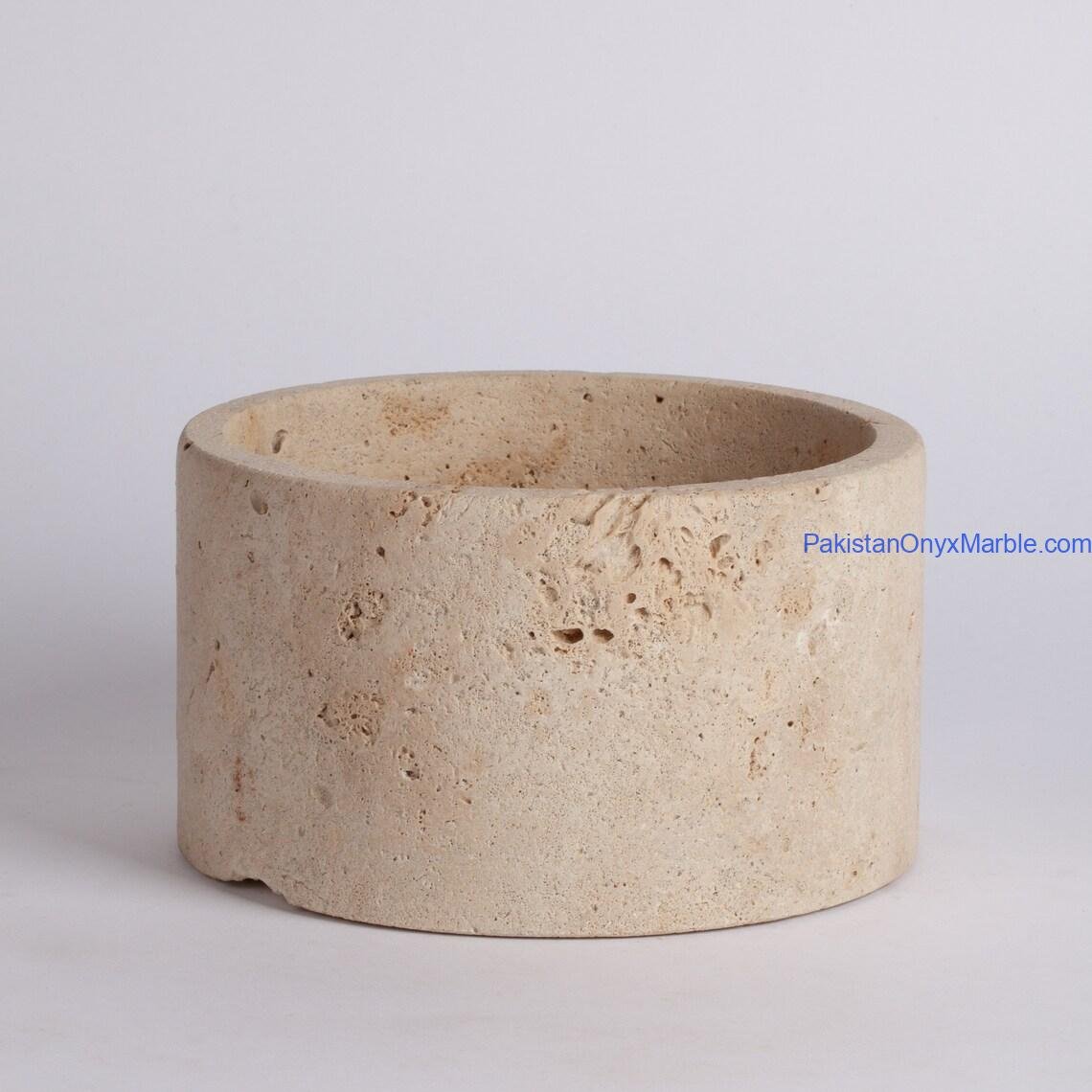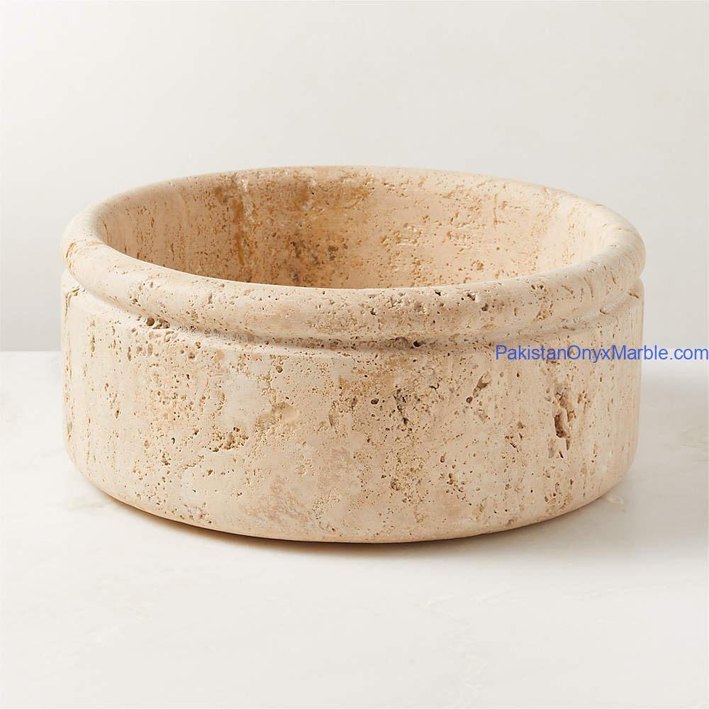 Pakistan Onyx Marble produces premium Travertine Angled-Design Bowls, carved from Grade-A Natural Travertine.