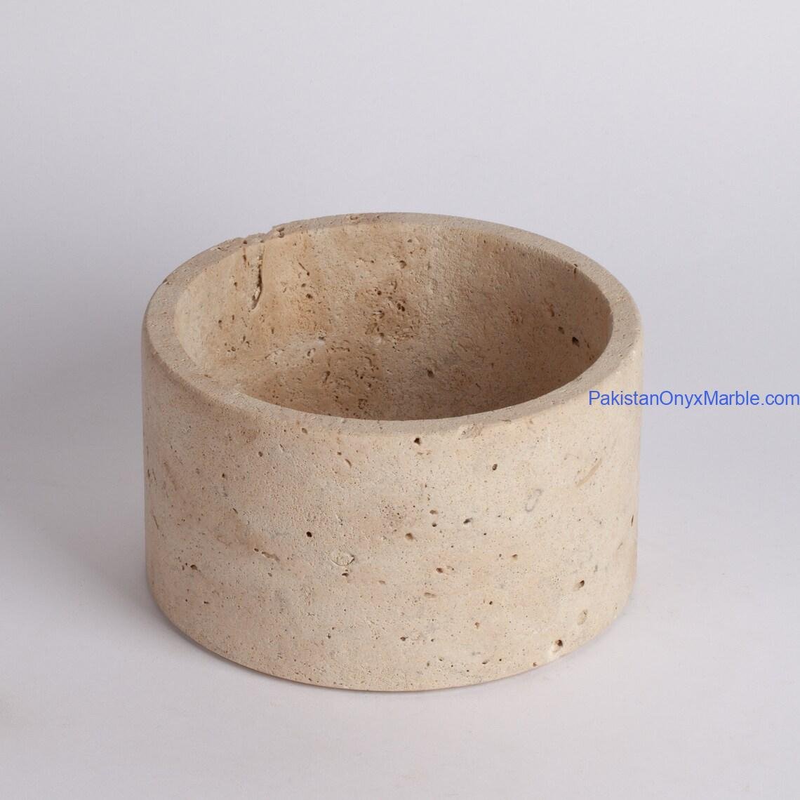 Travertine Stone Serving Decorate Bowls Cylinder Design