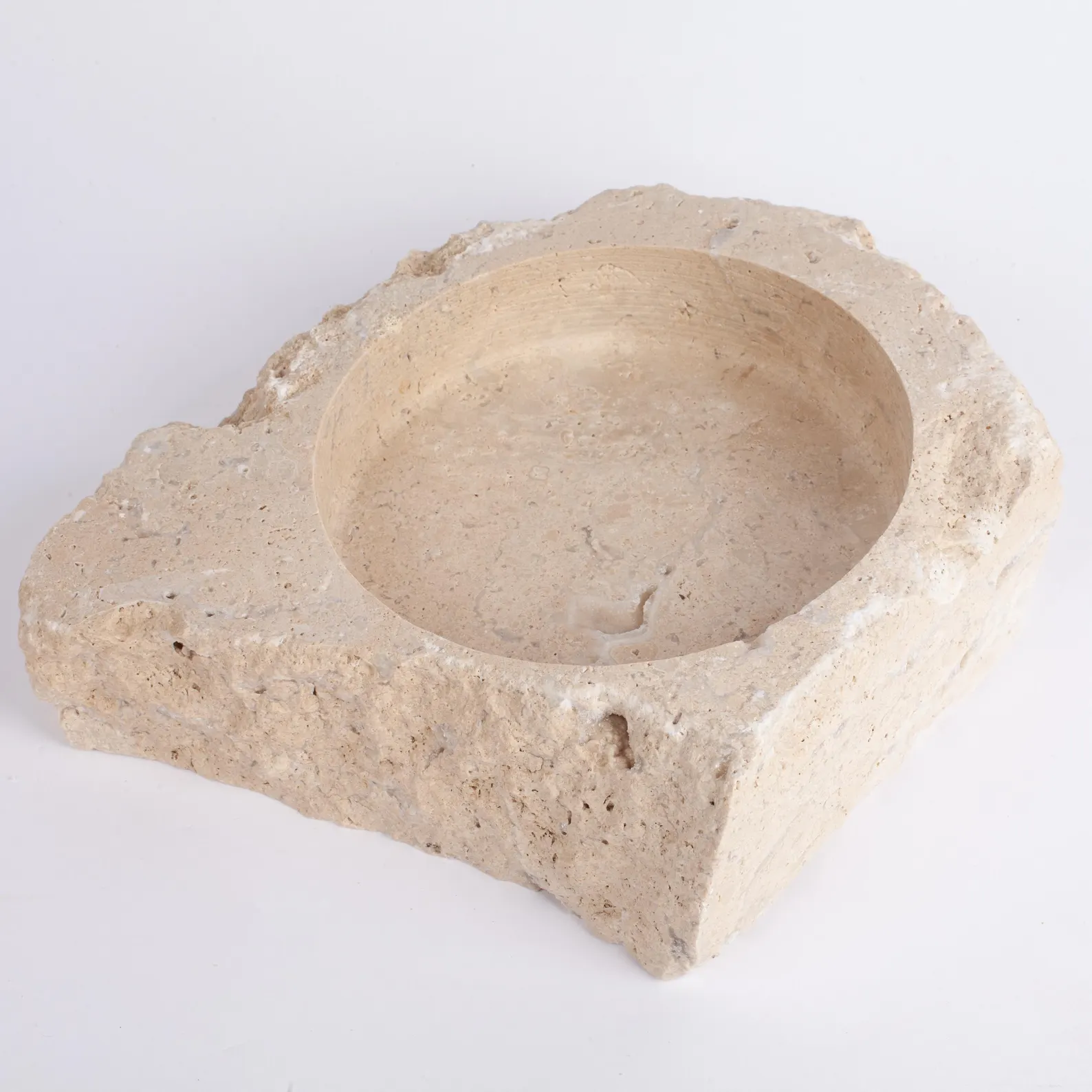 Travertine Stone Serving & Decorating Bowls – Irregular Outer Rough Design