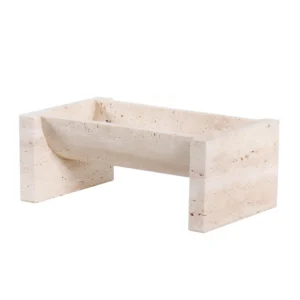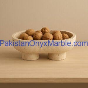 Pakistan Onyx Marble manufactures premium Travertine Oval Footed Bowls, carved from Grade-A Natural Travertine with warm beige, cream, and soft vein patterns.