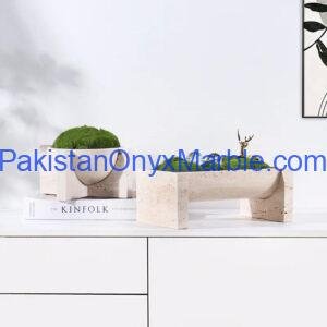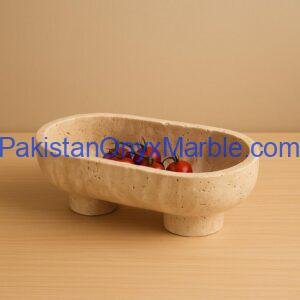 Pakistan Onyx Marble manufactures premium Travertine Oval Footed Bowls, carved from Grade-A Natural Travertine with warm beige, cream, and soft vein patterns.