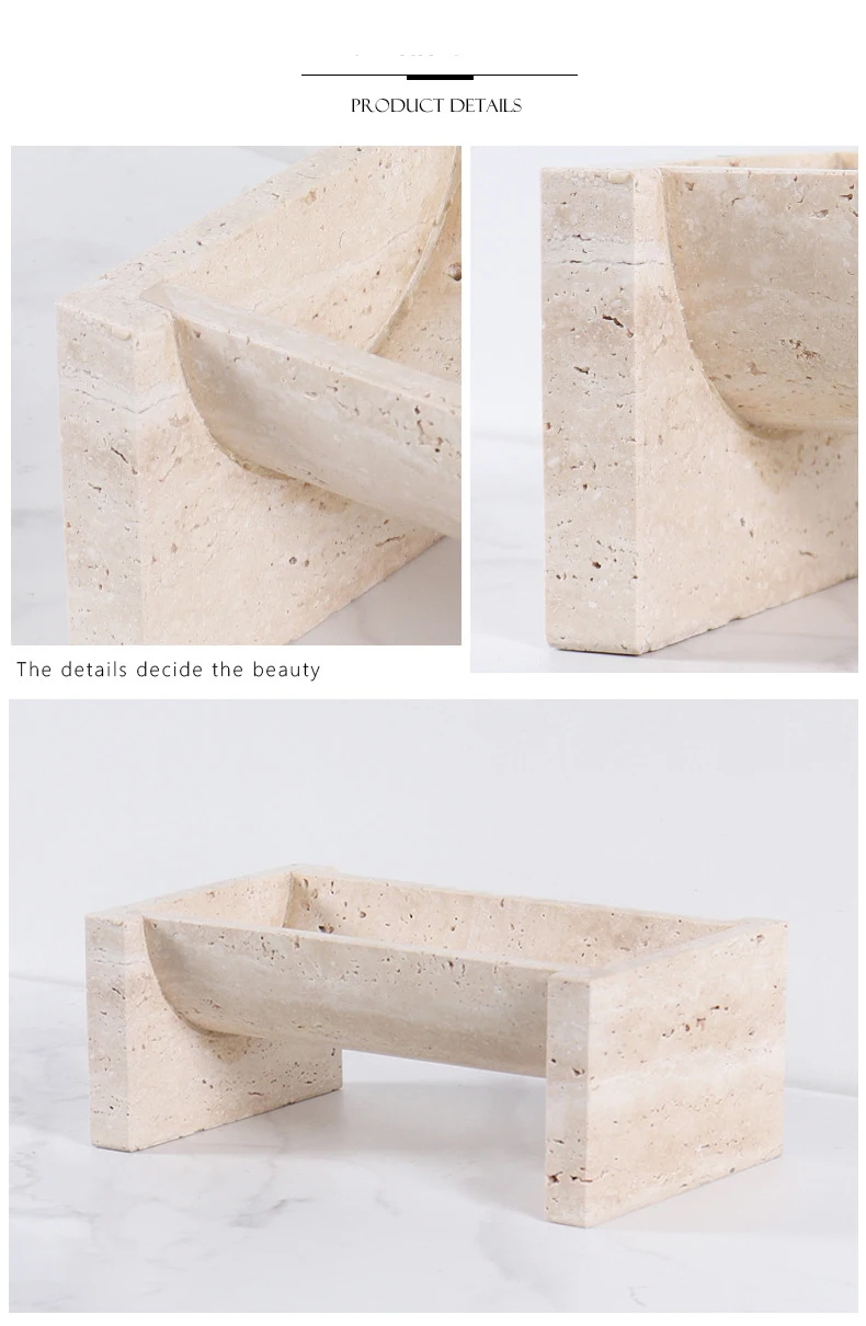 Travertine Stone Serving & Decorating Bowls – Oval Footed Design