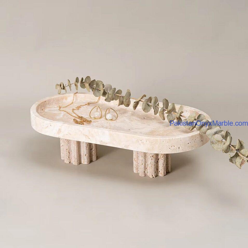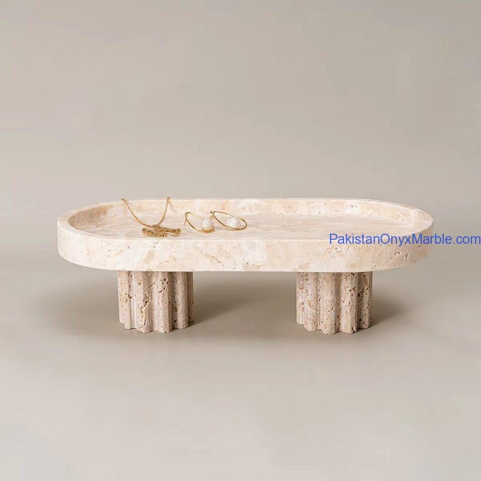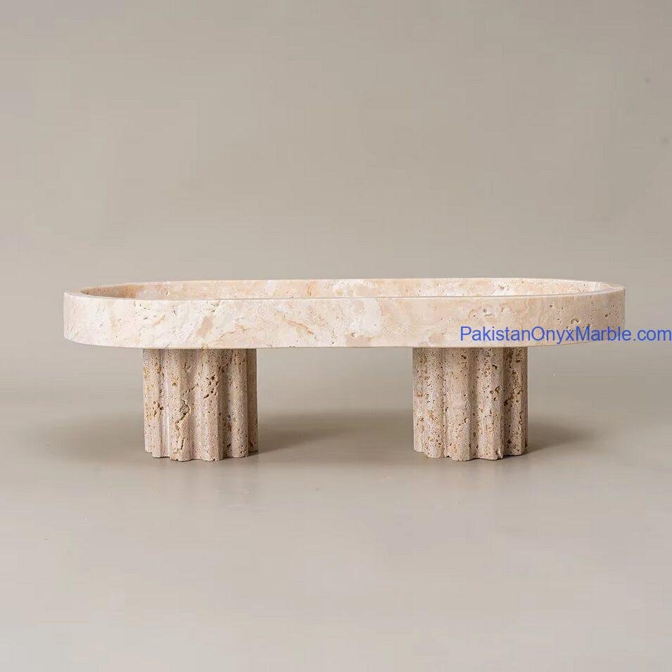Travertine Stone Serving & Decorating Bowls – Oval Scalloped Base Design