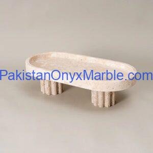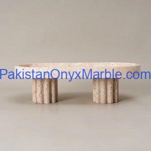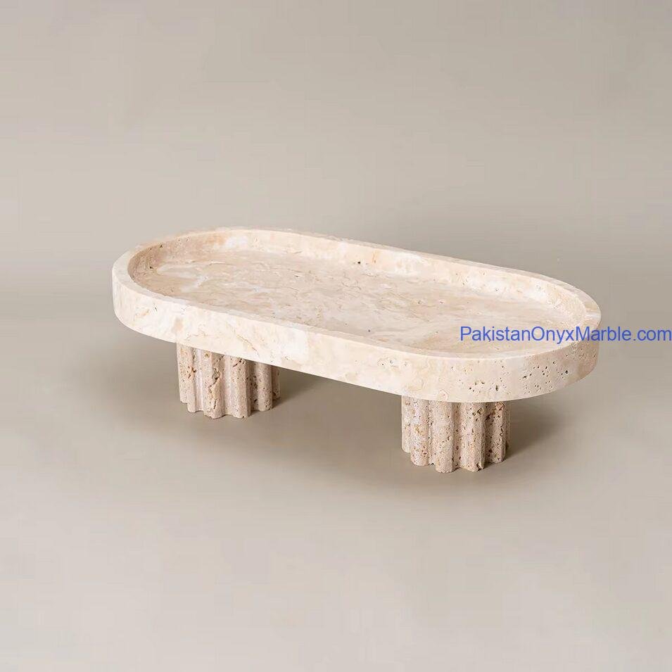 Pakistan Onyx Marble manufactures premium Travertine Oval Scalloped Base Bowls, crafted from Grade-A Natural Travertine with warm beige, cream, and elegant vein patterns.