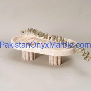 Travertine Stone Serving Decorate Bowls Oval Scalloped Base Design
