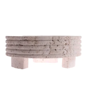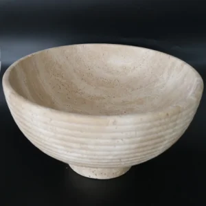 ravertine Stone Serving & Decorating Bowls – Round Footed Lines Design