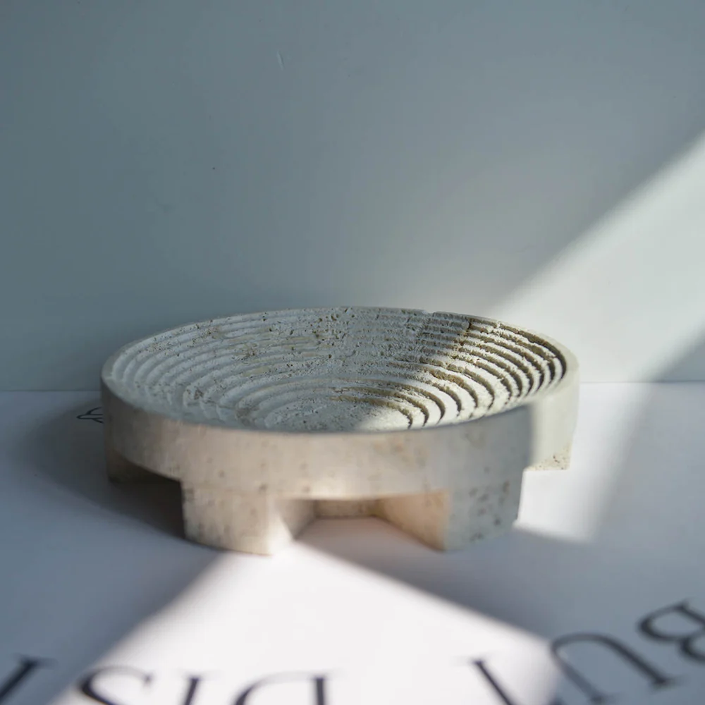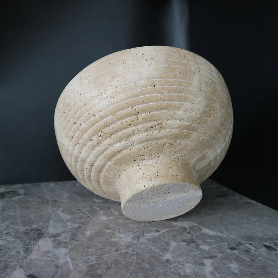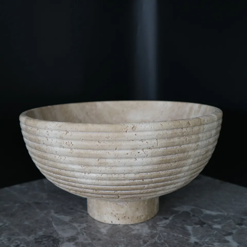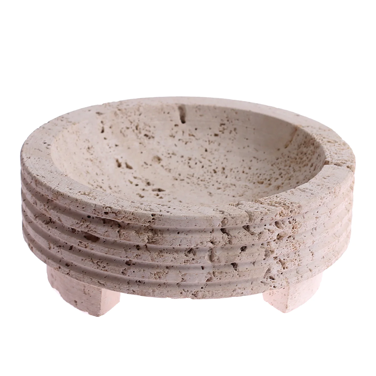 ravertine Stone Serving & Decorating Bowls – Round Footed Lines Design