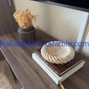 Travertine Stone Serving Decorate Bowls Round Twisted Design