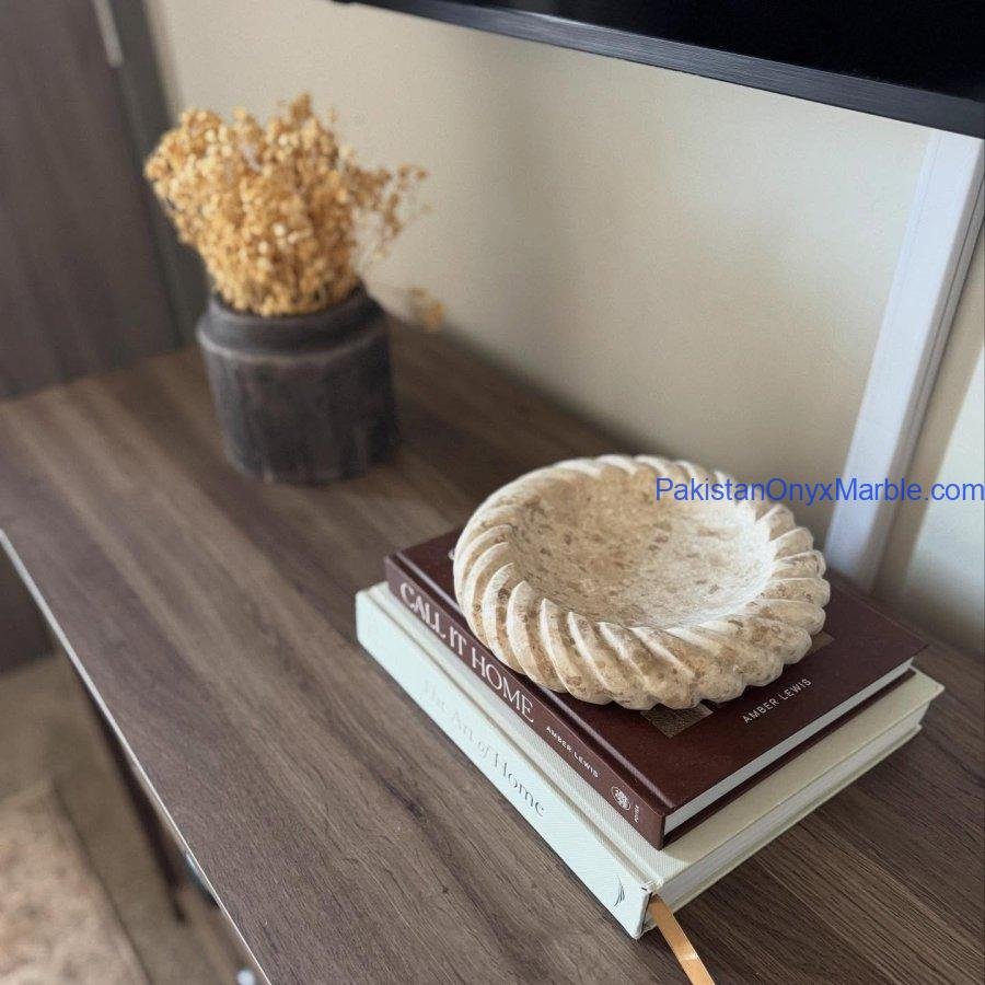 Travertine Stone Serving & Decorating Bowls – Round Twisted Design