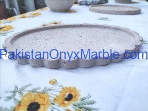 Travertine Stone Serving Trays – Oval Scalloped Design
