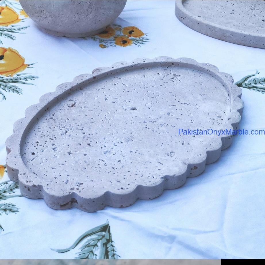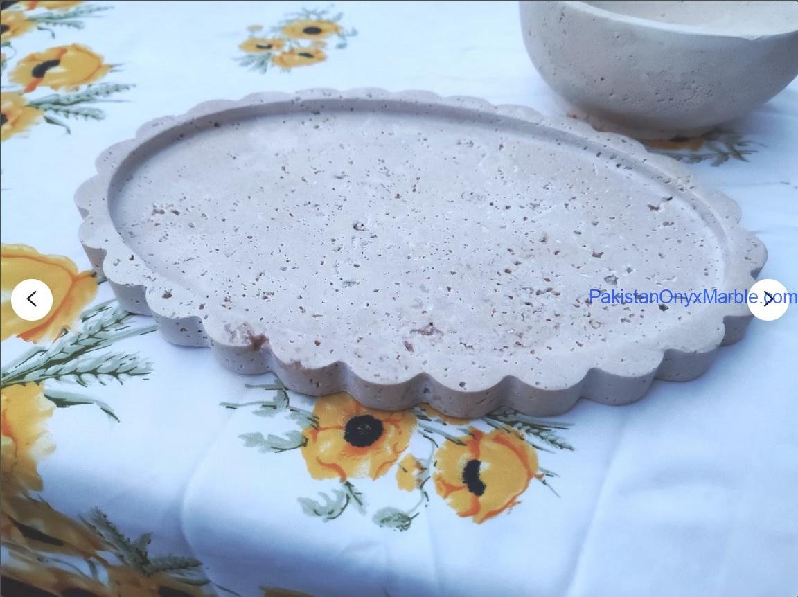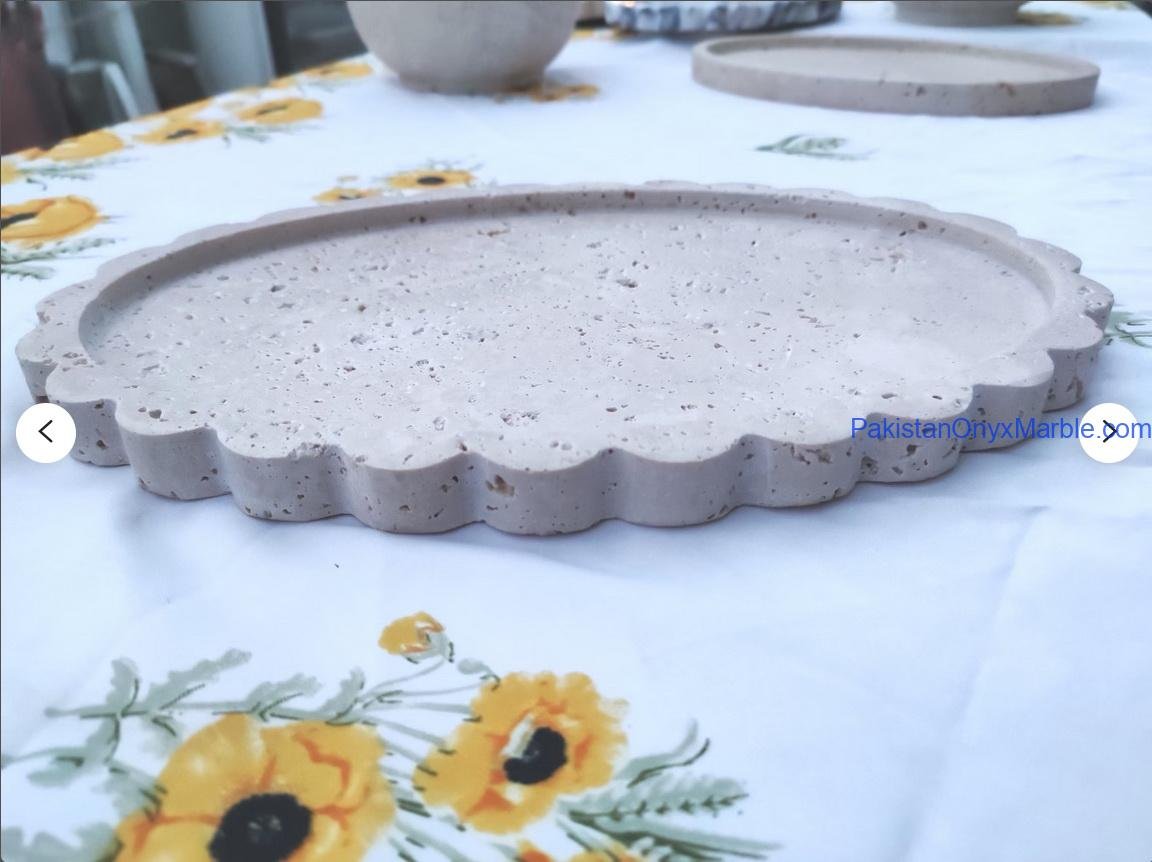 Travertine Stone Serving Trays – Oval Scalloped Design