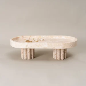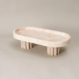 Travertine Stone Serving Trays – Oval Scalloped Footed Design
