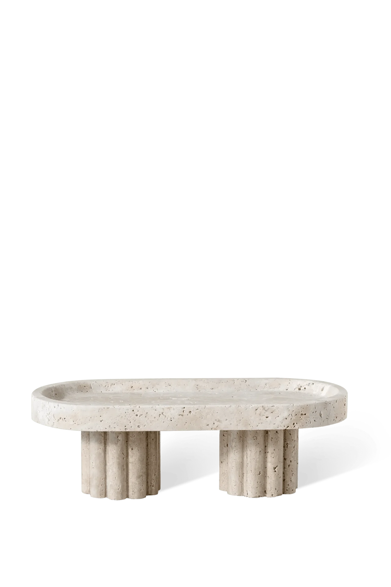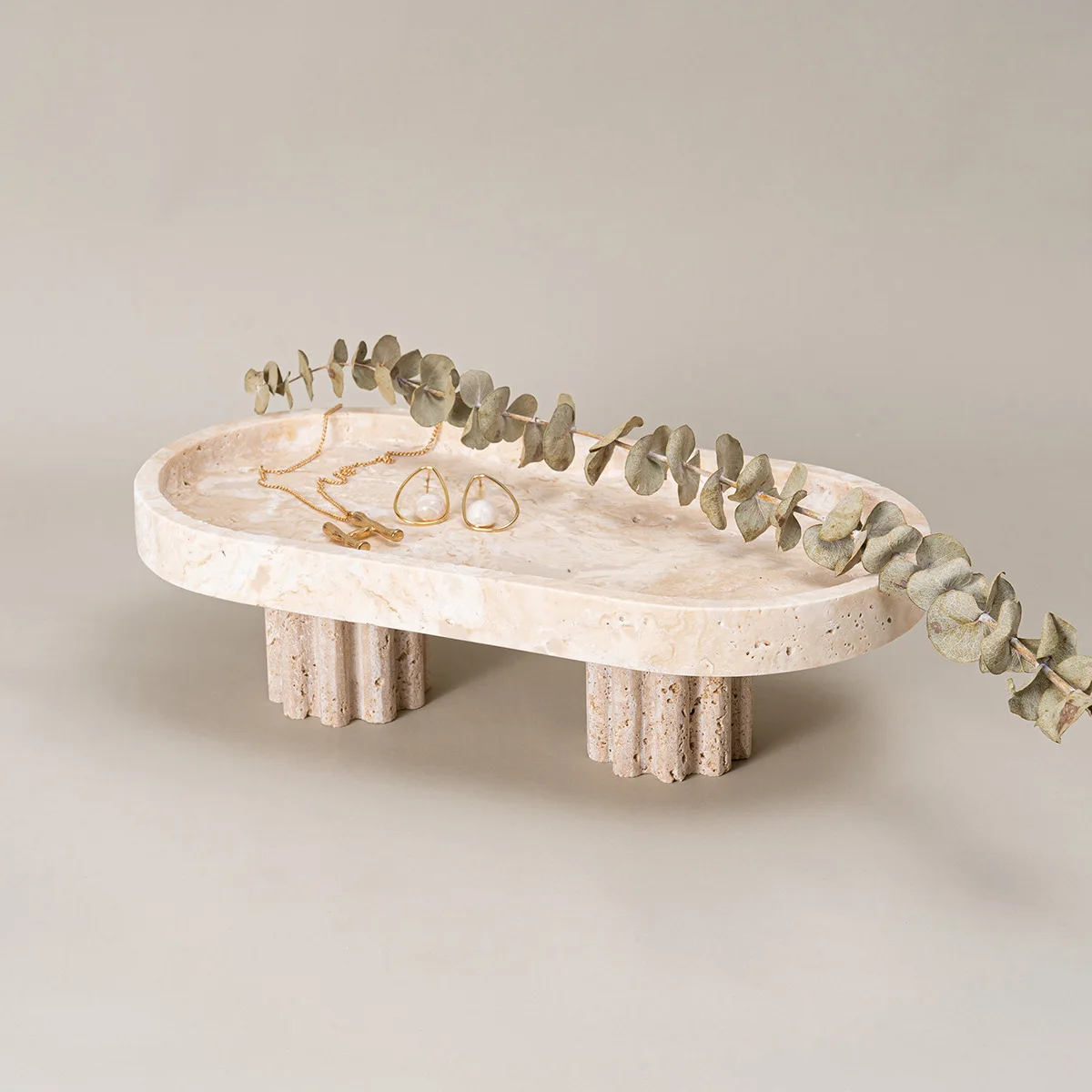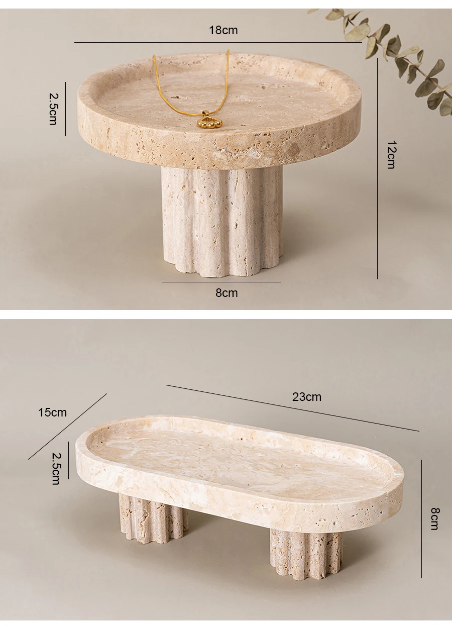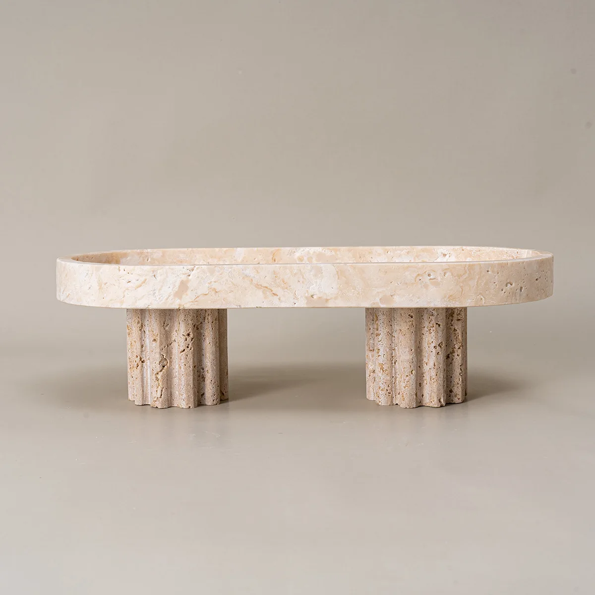 Travertine Stone Serving Trays – Oval Scalloped Footed Design