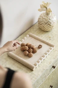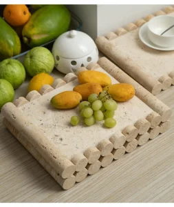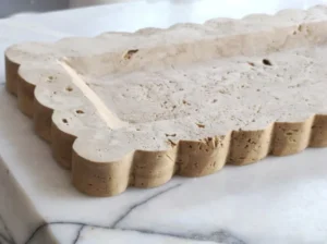 Travertine Stone Serving Trays – Rectangle Scalloped Design