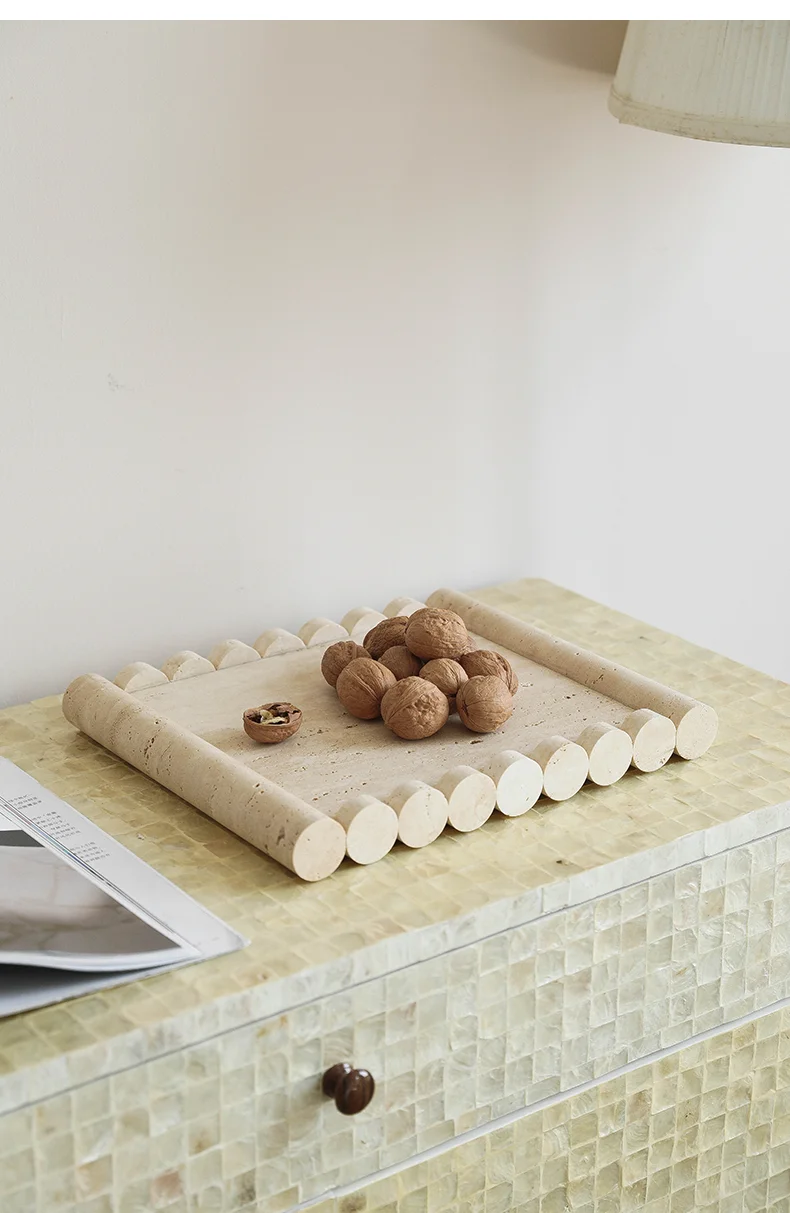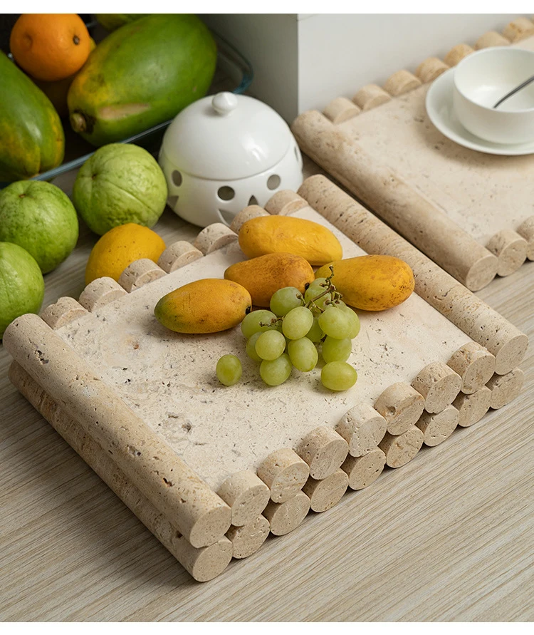 Travertine Stone Serving Trays – Rectangle Scalloped Design