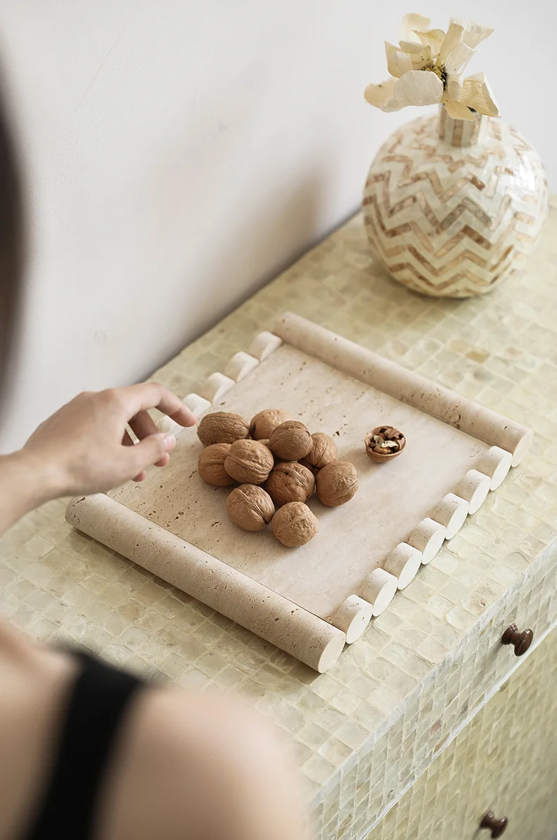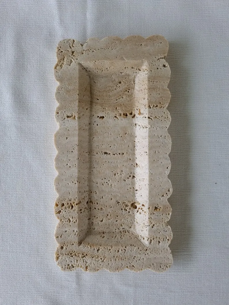 Our Rectangle Scalloped Travertine Serving Trays combine clean rectangular geometry with delicately carved scalloped edges. Each tray is hand-cut from natural Travertine and finished with a smooth honed surface, giving it a refined, timeless aesthetic. The scalloped border adds a soft, decorative character that elevates any interior — perfect for luxury homes, hotels, cafés, and curated décor spaces.