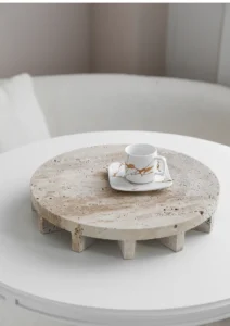 Our Round Stand Travertine Serving Trays offer a perfect blend of minimal elegance and elevated presentation. Crafted from 100% natural Travertine, each tray features a smooth honed surface, warm earthy tones, and unique stone veining. The raised stand/base adds height and presence, turning the tray into a functional display piece ideal for luxury homes, hotels, spas, cafés, and curated décor styling.