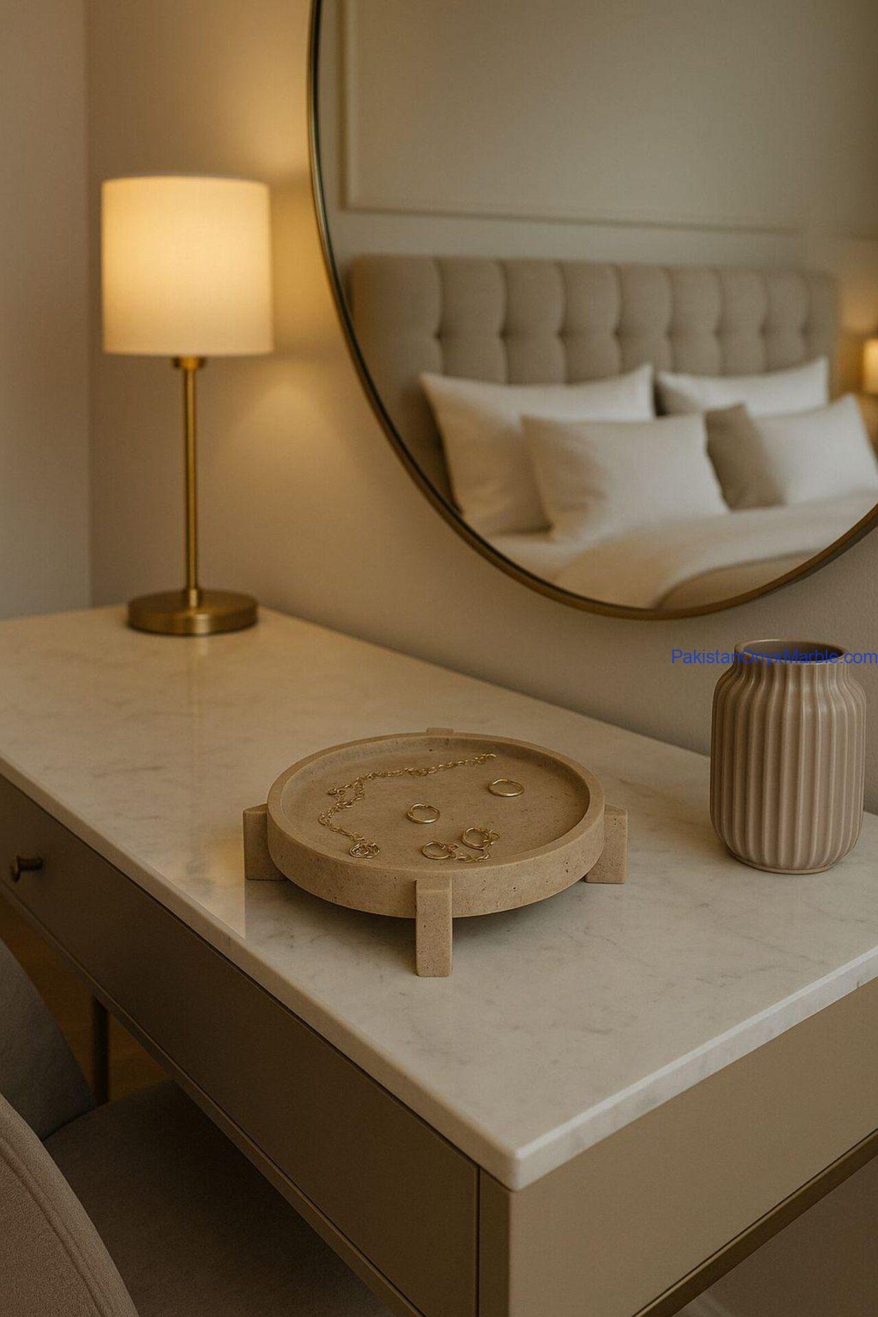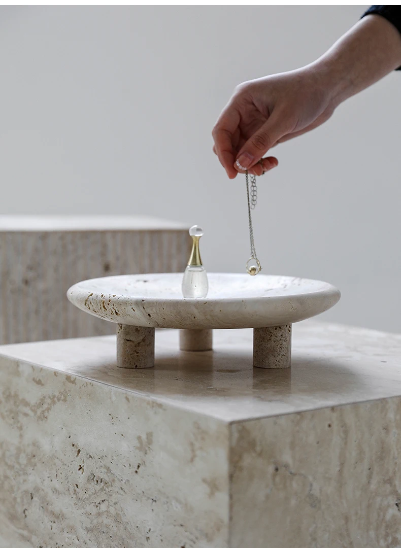 Our Round Stand Travertine Serving Trays offer a perfect blend of minimal elegance and elevated presentation. Crafted from 100% natural Travertine, each tray features a smooth honed surface, warm earthy tones, and unique stone veining. The raised stand/base adds height and presence, turning the tray into a functional display piece ideal for luxury homes, hotels, spas, cafés, and curated décor styling.